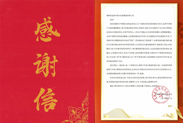 紙短情長 字字暖心|拉絲廠房項(xiàng)目收到感謝信