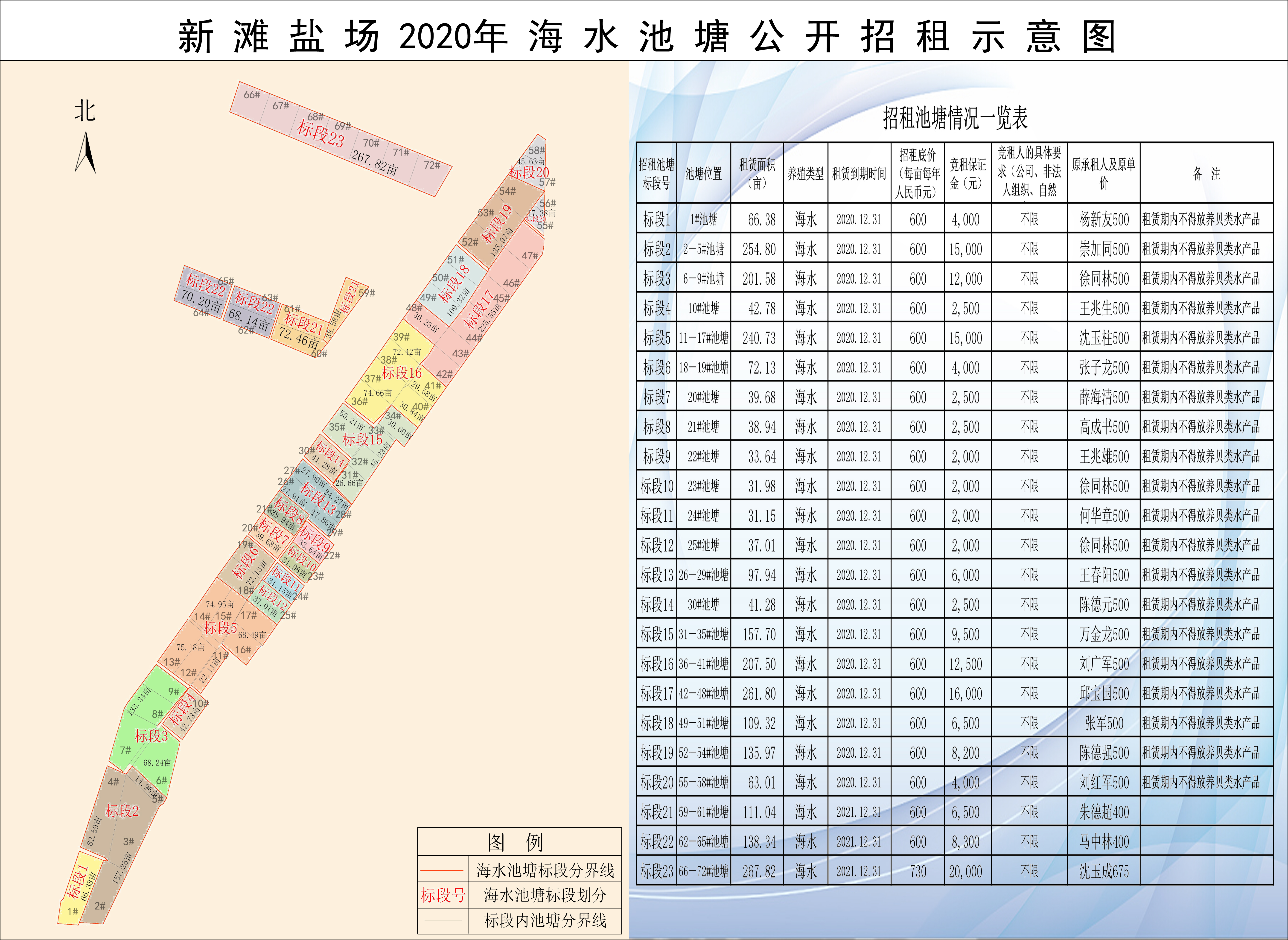 招租人江蘇省銀寶鹽業(yè)有限公司新灘鹽場(下簡稱新灘鹽場)擬對租期屆滿的養(yǎng)殖池塘/水庫(下統(tǒng)稱池塘)進(jìn)行公開招租,相關(guān)事項公告如下: